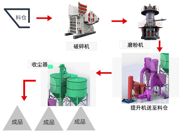 白云石加工分為四個(gè)階段,破碎、磨粉、分級(jí)和集粉四個(gè)階段。破碎階段選擇破碎機(jī),破碎到可以進(jìn)入磨粉機(jī)的細(xì)度,磨粉階段就將符合規(guī)格的白云石經(jīng)提升機(jī)送至料倉(cāng),再經(jīng)振動(dòng)給料機(jī)將其均勻定量的送入磨粉機(jī)的研磨室內(nèi)進(jìn)行研磨。這一步就需要磨粉機(jī)的選擇,需要的細(xì)度是多少,粗磨、細(xì)磨還是超細(xì)磨等進(jìn)行選擇。第三階段就要進(jìn)行分級(jí),將不合格的物料分離出來,送入磨粉機(jī)重新加工,合格的物料進(jìn)入第四階段集粉,將成品收集到收塵器,收集的成品經(jīng)出料口由輸送裝置送至成品料倉(cāng)。在這個(gè)過程中要注意排放,要符合環(huán)保要求。