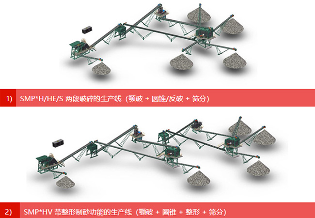 SMP 模塊化生產(chǎn)線是一個基于標準破碎和篩選模塊的固定解決方案。主要用于各種石料的破碎、篩分、整形、制砂以及建筑垃圾的處理。黎明重工SMP模塊化破碎生產(chǎn)線,基于砂石破碎現(xiàn)場需求,在固定和移動生產(chǎn)線應用的基礎上,通過預先設計好的破碎篩分模塊和現(xiàn)場布局規(guī)劃,推出一種具有高便捷性的模塊組合式快速生產(chǎn)線。滿足快速交付、快速組裝,比傳統(tǒng)生產(chǎn)線更快的交付和調(diào)試。同時,整體可靠性高,無需大面積構建混凝土基礎,更加符合環(huán)保要求。