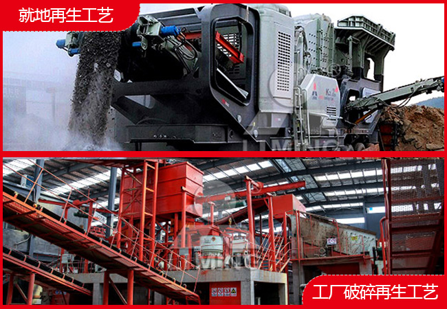 就地再生工藝是采用移動式破碎設(shè)備在建筑垃圾現(xiàn)場進(jìn)行處理。這種方式的優(yōu)勢在于各種設(shè)備可以任意移動靠近加工點,減少運輸成本及避免了二次污染;各種移動設(shè)備可以根據(jù)需要相互組合,生產(chǎn)各種再生骨料。